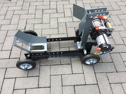 Die fahrbare Standschiene verfügt über eine Wippe, eine elektrische Seilwinde mit Haken, die durch den Akku gespeist wird.